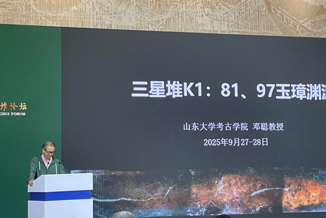 现场,山东大学考古学院解说邓聪以《三星堆K1:81、97玉璋渊源》为题带来了精彩共享。